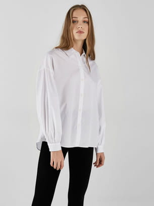 Chemise blanche en coton à manches bouffantes et patte de boutonnage sur le devant avec large col en pointe de Bershka