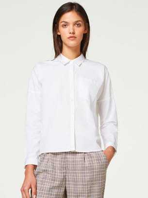 Chemise blanche en coton et stretch à petit col en pointe et dos ouvert à l'aide de pans qui se chevauchent d'Esprit