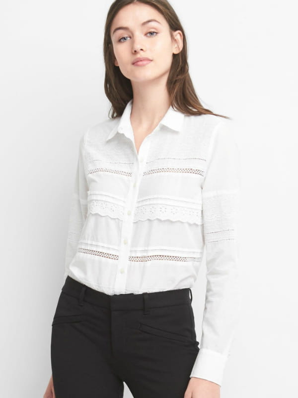 Chemise blanche en coton à col en pointe et ourlets arrondis avec empiècements dentelles et œillets de Gap
