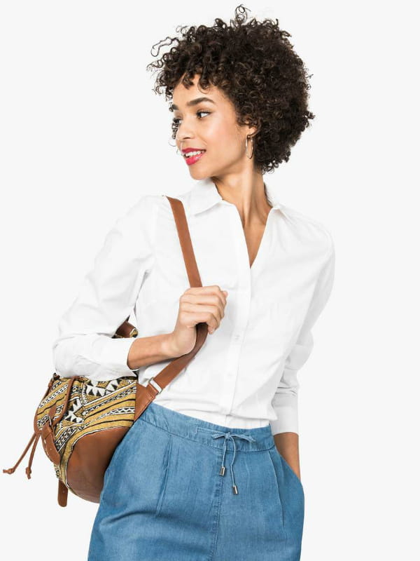 Chemise blanche cintrée en coton à col en pointe et ourlets arrondis avec patte de boutonnage sur le devant de Gémo