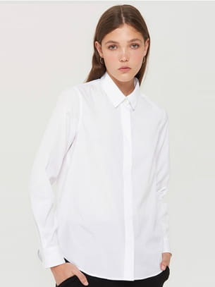 Chemise blanche loose en coton à col en pointe et poignets boutonnés avec patte de boutonnage dissimulée de Gérard Darel