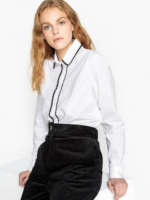 Chemise blanche à col club et patte de boutonnage ornée d'un gallon noir de La Redoute