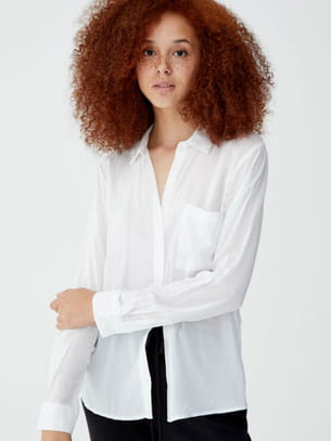Chemise blanche en viscose à col en pointe et poche sur la poitrine avec fermeture boutonnée de Pull & Bear