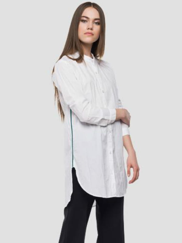 Longue chemise blanche en coton à col mao et fentes latérales avec un liseré en velours de Replay