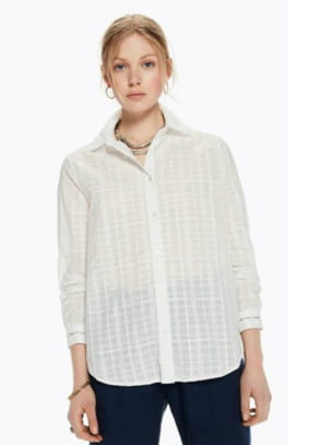 Chemise blanche en coton texturé et légèrement transparent à carreaux et col en pointe avec broderies ajourées aux poignets de Scotch & Soda