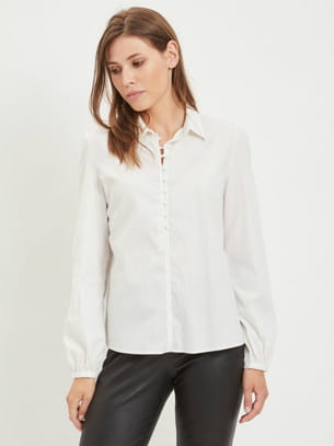 Chemise blanche en coton à col en pointe et poignets froncés avec fermeture à boutons bombés de VILA