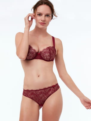 Soutien-gorge sans coques et culotte bi-matière en dentelle bordeaux de Etam