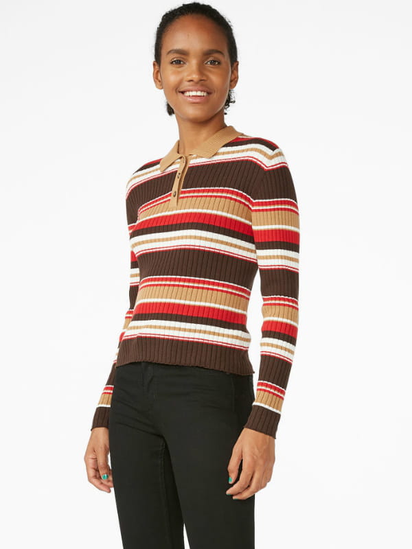Pull moulant à rayures horizontales multicolores et col façon polo avec fermeture boutonnée de Monki