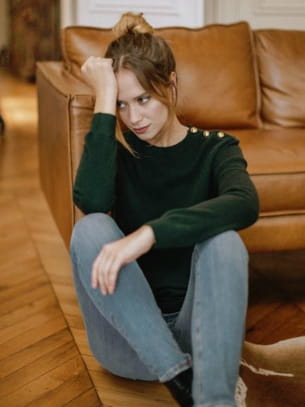 Pull droit et fin en 100% cachemire à col rond et boutons dorés sur une épaule couleur vert anglais d'Hircus