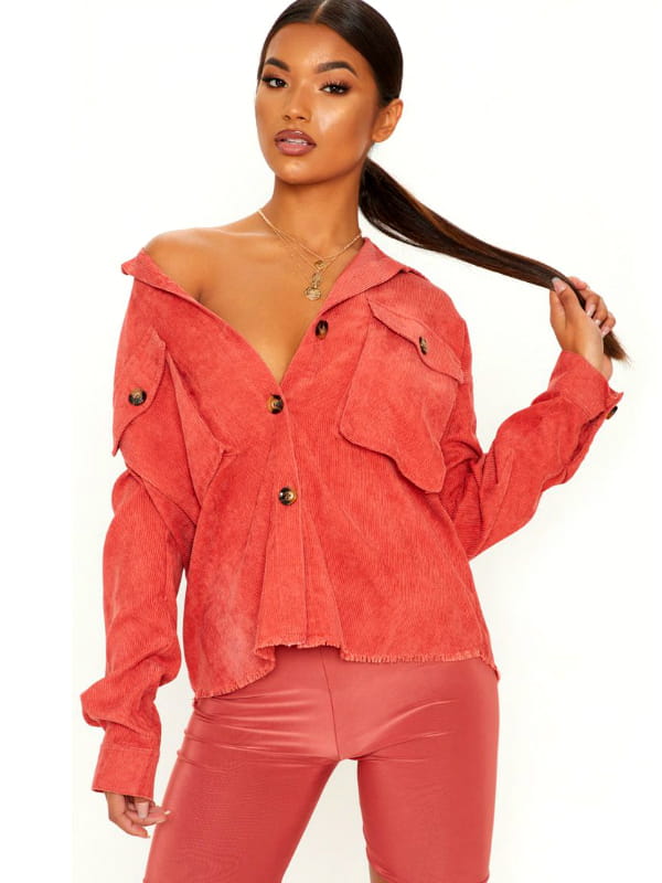 Chemise à bord franc en velours côtelé à poches de Prettylittlething
