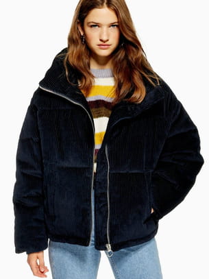 Doudoune en velours côtelé marine de Topshop