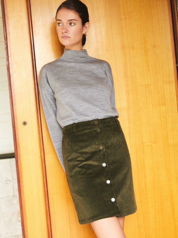 Jupe courte boutonnée en velours côtelé vert de Comptoir des Cotonniers