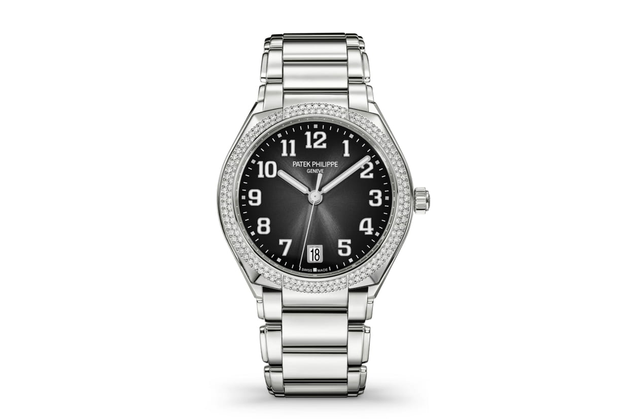 Montre à remontage automatique en acier lunette sertie de diamants avec cadran 36 mm bleu et fond saphir de Patek Philippe