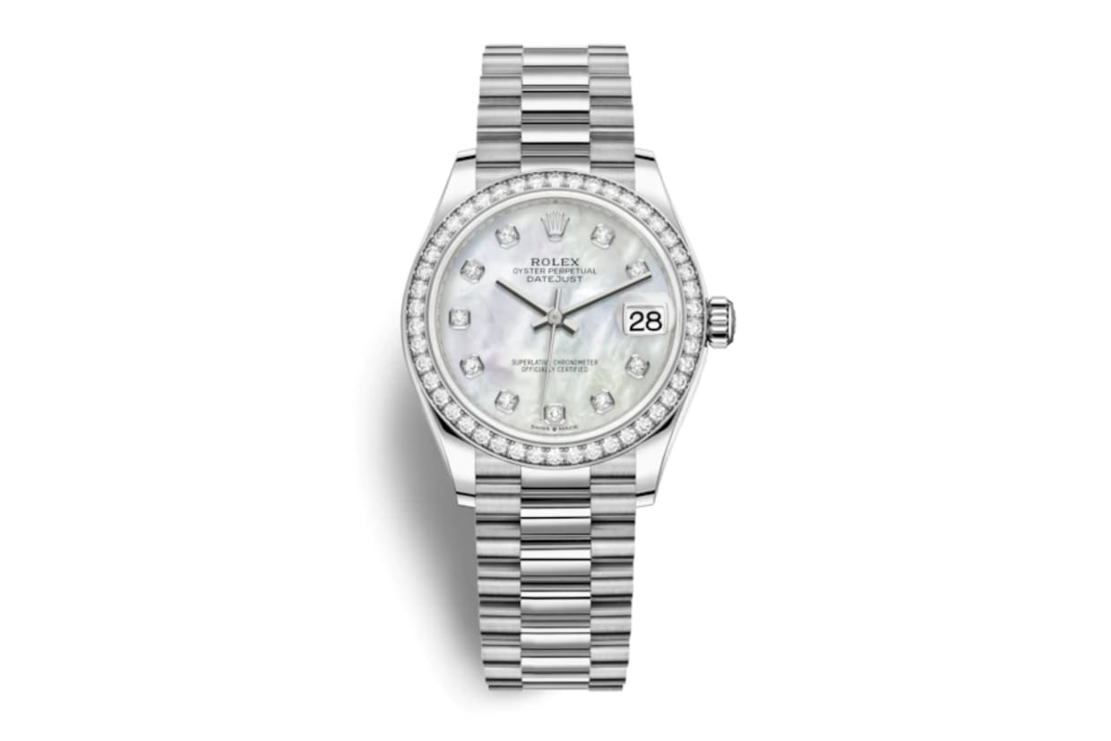 Montre automatique à remontage perpétuel en or gris avec boîtier 31 mm serti de diamants de Rolex