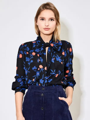Blouse à lavallière fluide noire à fleurs de Suncoo