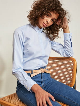 Chemise col claudine brodée bleue de Maison Labiche