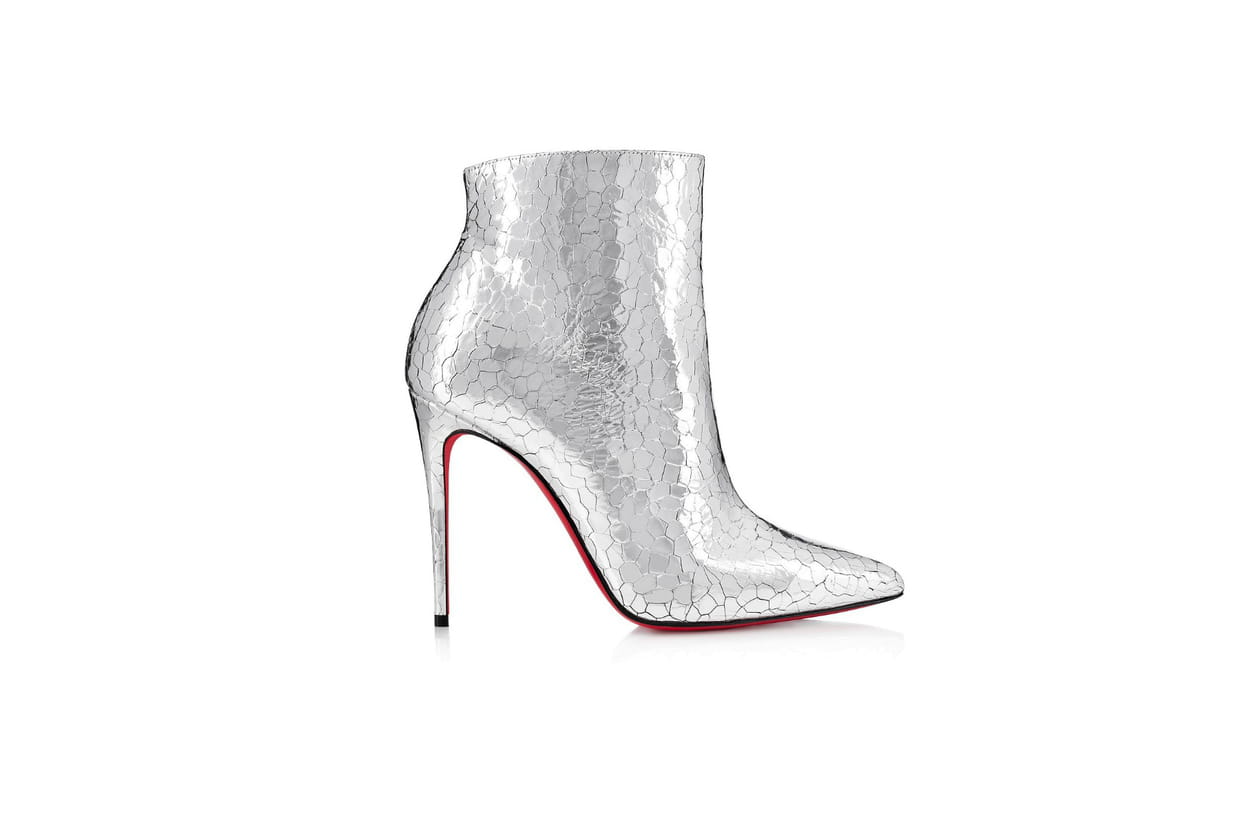 Boots en specchio martelé argenté à bouts pointus et talons aiguilles de Louboutin