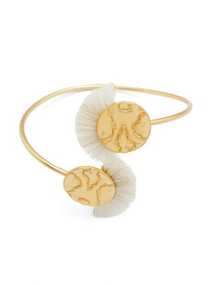 Bracelet manchette en laiton doré à l'or fin avec franges en coton de Lou.Yetu