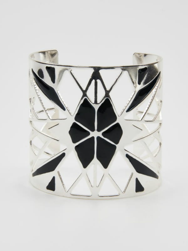 Bracelet manchette en zinc argent avec détails noirs de Moa