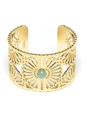 Bracelet manchette en laiton doré à l'or fin avec pierre aventurine de Emma & Chloé