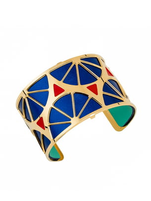 Bracelet manchette en laiton doré avec cuir bleu sirène verre d'eau de Les Gorgerettes by Altesse
