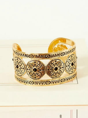 Bracelet manchette en laiton doré à l'or fin avec motifs noirs de Sézane