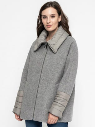 Caban court et ample en laine mélangée grise avec empiècements matelassés au col et aux poignets à fermeture zippée et poches passepoilées sur les côtés de Devernois