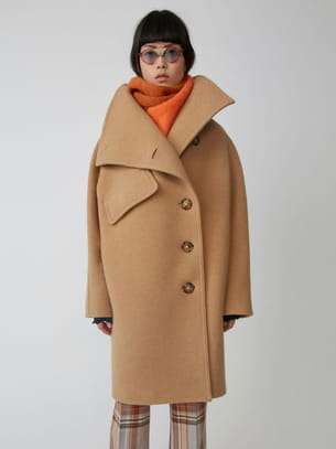 Manteau droit mi-long oversize à large col en pointe montant et emmanchures tombantes avec poche à rabat sur la poitine et fermeture à simple boutonnage façon corne sur un côté et poches passepoilées sur les côtés d'Acne Studios