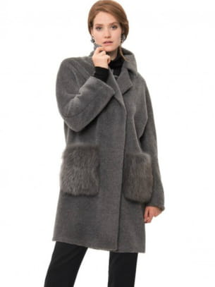 Manteau droit mi-long et oversize en laine mélangée grise à col tailleur et poches plaquées en fourrure synthétique sur le devant avec fermeture à boutons-pressions de Weill