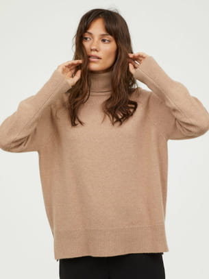 Pull ample en cachemire beige chiné à bordures et col roulé côtelés avec emmanchures tombantes d'H&M