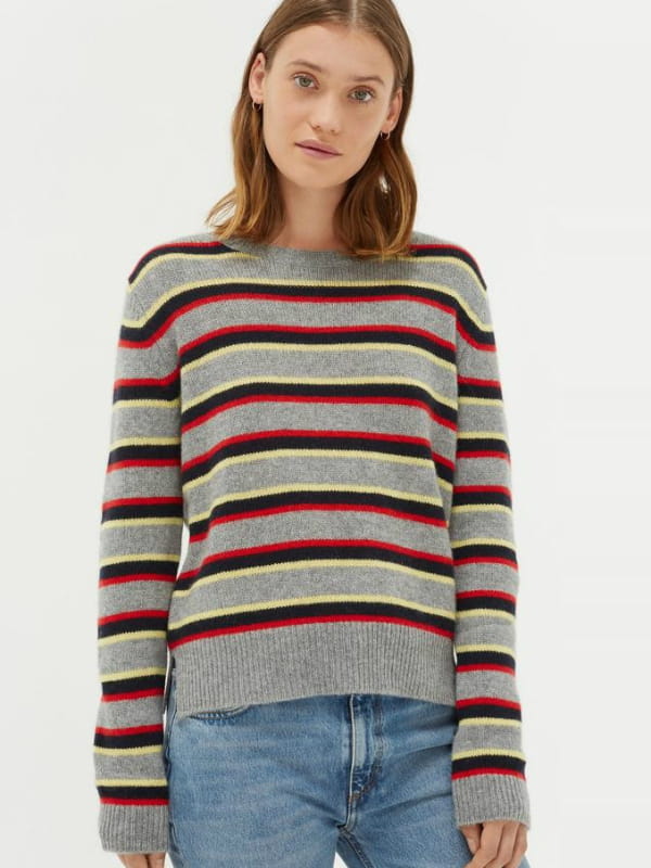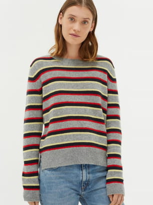 Pull droit en cachemire à rayures multicolores et encolure ronde avec bordures côtelées de Chinti & Parker