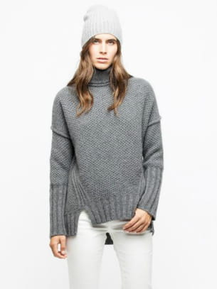 Pull ample en cachemire gris chiné à col roulé et fentes sur le devant avec bordures côtelées et coutures apparentes de Zadig & Voltaire