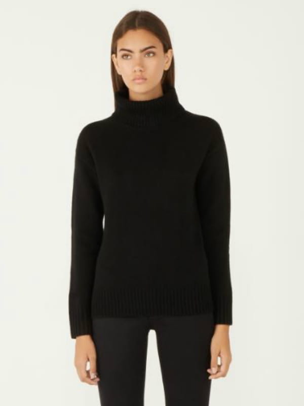 Pull droit en cachemire noir à col roulé et bordures côtelées avec emmanchures tombantes des Galeries Lafayette