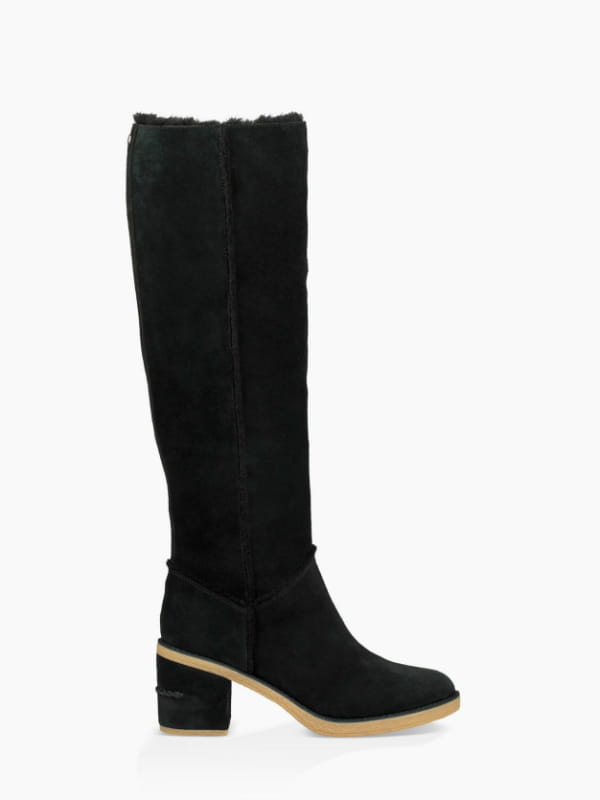 Bottes fourrées à talon en suède noires de Ugg