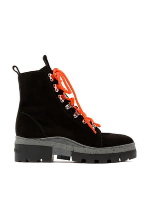 Bottines en croûte de cuir noires à lacets fluo de Bimba y Lola