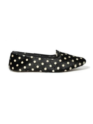 Pantoufles en poulain noir à pois blancs avec fausse fourrure à l'intérieur de Mila Jack