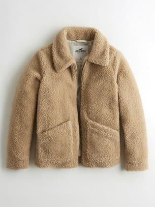 Manteau court façon peau de mouton couleur nude à col en point avec fermeture zippée et poches plaques sur le devant d'Hollister