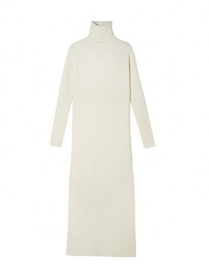 Longue robe-pull en cachemire mélangé côtelé couleur écru avec col roulé large d'Eric Bompard