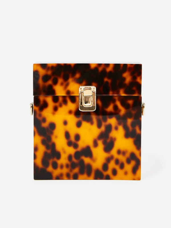 Minaudière rectangulaire en methacrylate à imprimé inspiration écaille de tortue avec chaîne et fermoir dorés d'Uterqüe