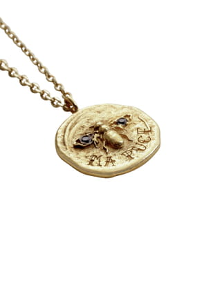 Médaillon en plaqué or travaillé en relief avec détails martelés et un mot doux gravé de Maje