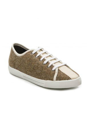 Baskets en feutre de laine avec une doublure et une semelle intérieure en coton couleur sable et beige avec fermeture lacée de Manufacture Degorce
