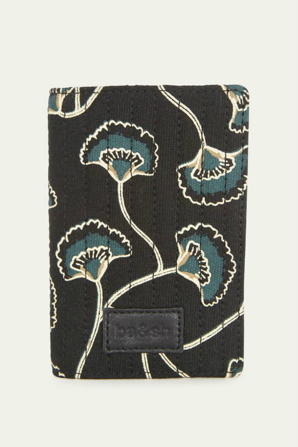 Couverture pour passeport noire en 100% coton à imprimé floraux avec jeux de couture verticaux de ba&sh