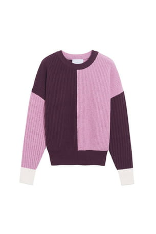 Pull court et oversize color-block en laine mélangée et texturée couleur vieux rose et bordeaux à encolure ronde et emmanchures tombantes avec bords-côtes de Valentine Witmeur Lab