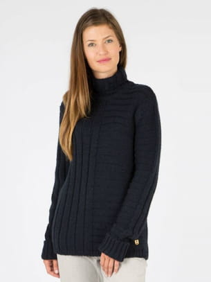 Pull 100% laine à maillage graphique couleur bleu marine avec col roulé et coupe droite d'Armor-Lux