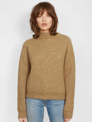 Pull en acrylique mélangé à maille côtelée couleur camel et col légèrement montant avec taille et poignets resserrés d'Anine Bing