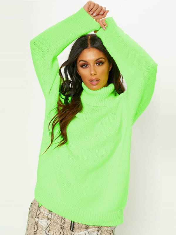 Pull en acrylique mélangé couleur citron vert fluo à col roulé et coupe loose avec épaules tombantes et bords-côtes côtelés de Prettylittlething