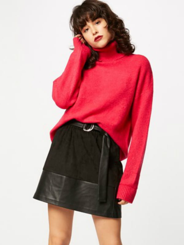 Pull en acrylique mélangé couleur fuchsia à col roulé et coupe loose avec extrémités côtelées et épaules tombantes de Morgan