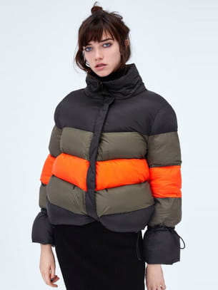 Doudoune courte oversize couleur multicolores à col légèrement montant et fermeture glissière invisible avec poches zippées sur le devant de Zara