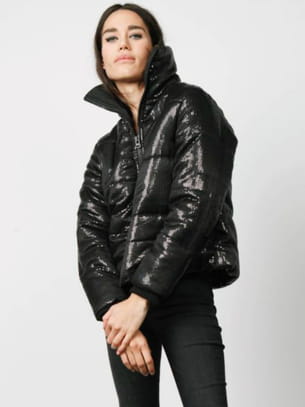 Doudoune courte oversize à sequins noirs et col montant avec fermeture zippée et poches passepoilées sur les côtés de Les Petites...