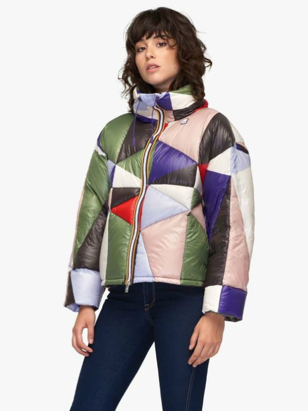 Doudoune courte oversize à imprimés géométriques multicolores et col montant avec fermeture zippée argentée et poches extérieures et intérieures de K-Way